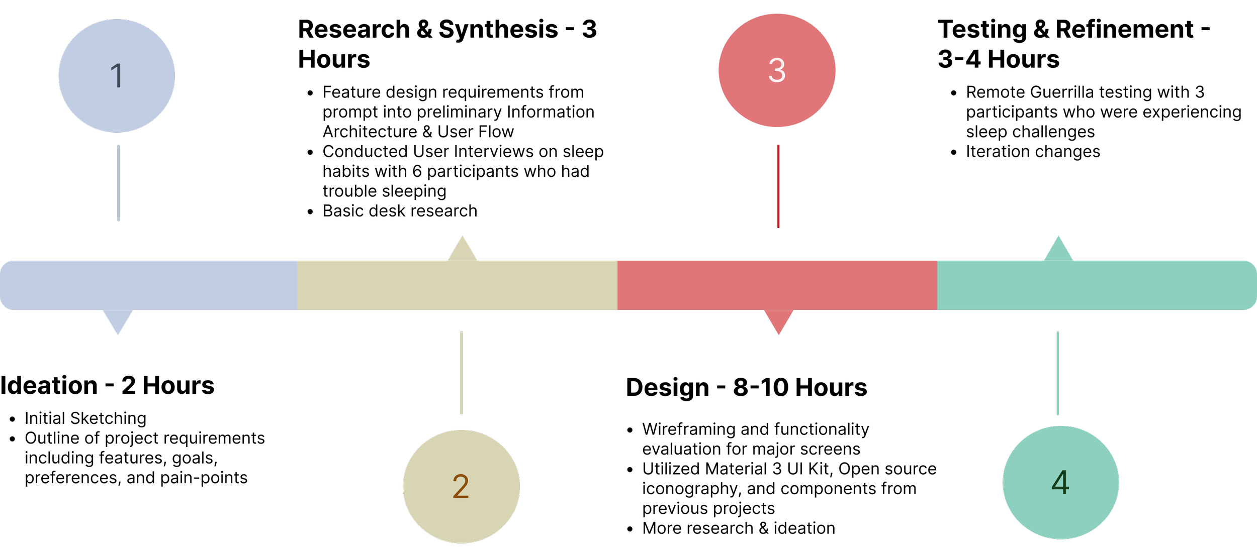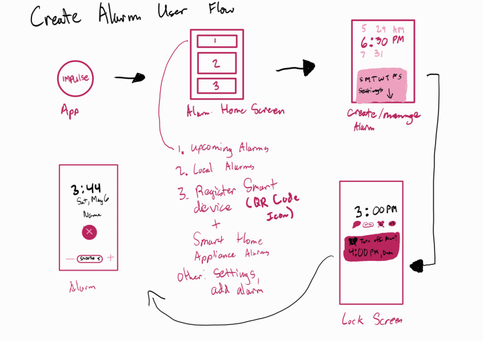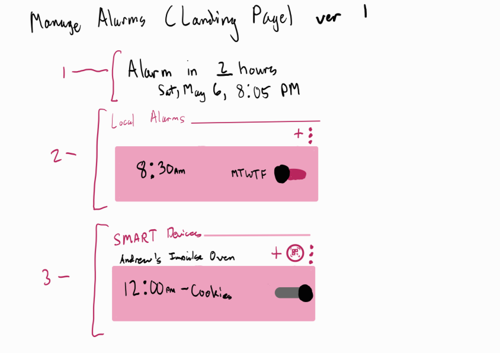 Prior to conducting user research, I found it important for our users to maintain convenient SMART device control through their phones. Here, I assumed that users would manage their sleep schedules and alarms using the device that they were more presently around.
