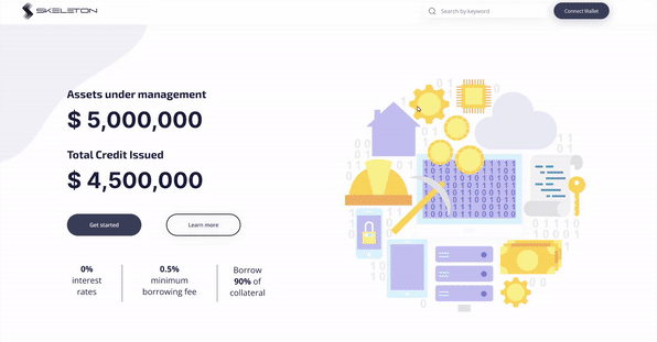Skeleton is a decentralized finance protocol that allows you to draw interest-free loans against Dagcoin (DAG) built on a distributed Ledger technology. Casey Olson, co-founder, approached my team(3) to design a platform to conduct business. This is our approach given to us in a time period of 1 month. As the UX Design Lead for this project, I chose to emphasize a simple and new-user friendly aesthetic to address financial platforms’ biggest issue, information overload.